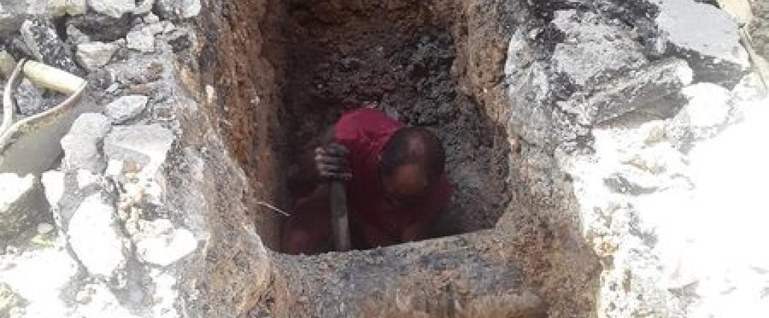Brigada de la Base de Saneamiento Centro trabaja en la reparación de entronque en calle San Miguel en el Consejo Popular Dragones, municipio Centro Habana.
