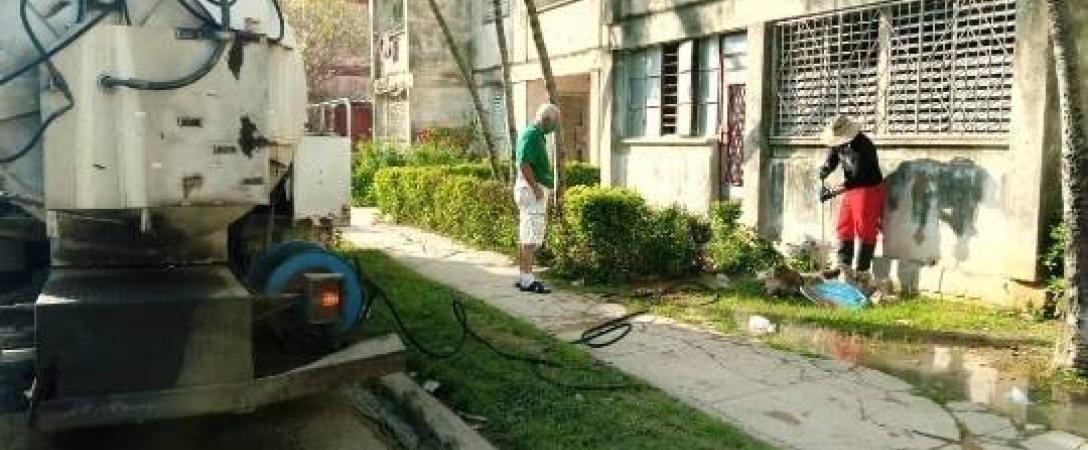 Brigada de la Base de Saneamiento del Este, trabaja en desobstrucción de redes de alcantarillado en calle 99 e/ 40A y 42, Consejo Popular Lotería, municipio Cotorro.