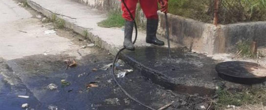 Brigada de la Base de Saneamiento del Este, trabaja en desobstrucción de redes de alcantarillado en calle 16 esquina 67, Consejo Popular San Pedro, municipio Cotorro.