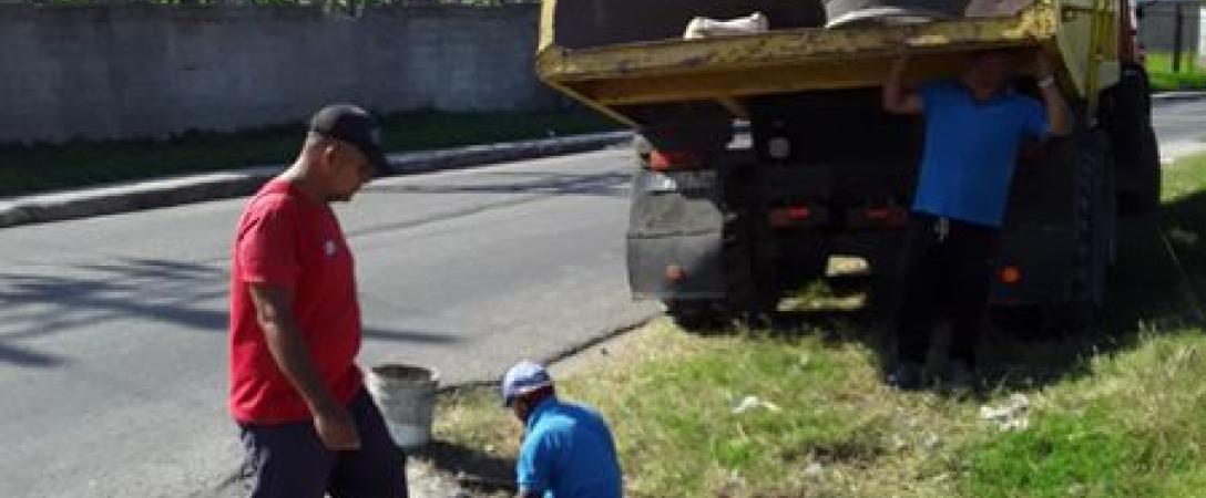Brigada de la Base de Saneamiento Este trabaja en la reparación de registro 24, en calle 1ra esquina Ceiba en el Consejo Loma Modelo del Municipio Regla.