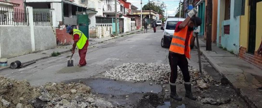 Brigada de la Base de Saneamiento Oeste mediante el trabajo correctivo repara línea de alcantarillado y entronque de registro en Ave 102 e/ 59 y 61, Consejo Popular Los Ángeles, municipio Marianao.