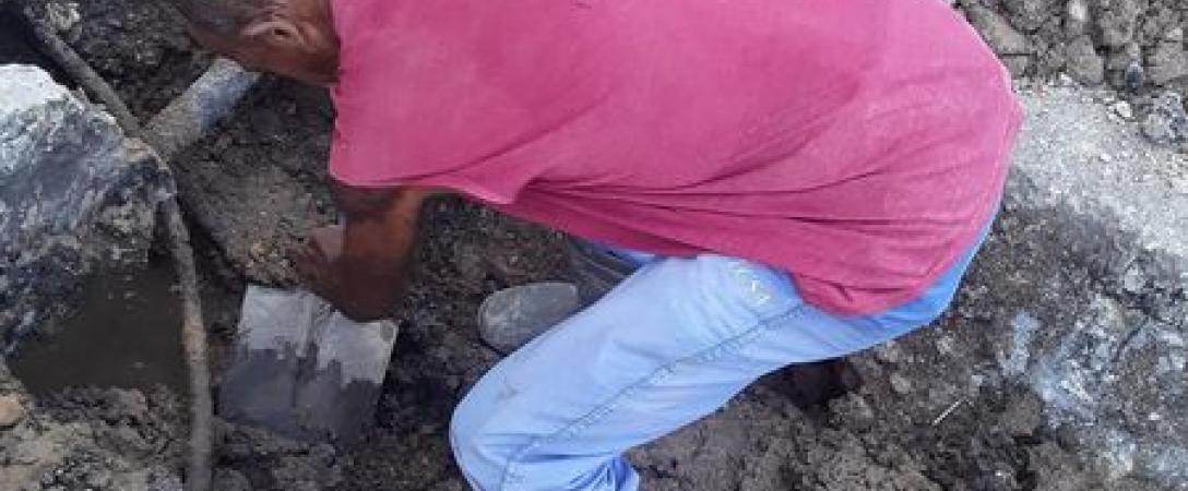 Brigada de la Base Saneamiento Centro trabaja en la reparación de entronque en calle Marina en el Consejo Popular Cayo Hueso del municipio Centro Habana.