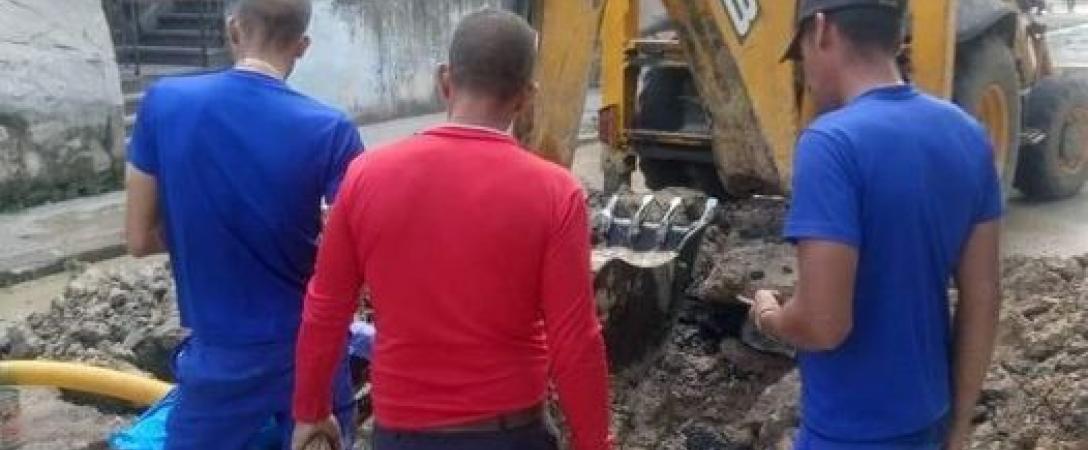 Brigadas de la Base de Acueducto Centro trabaja en la supresión de salidero en calle Correa y 10 de Octubre en el Consejo Popular Tamarindo, municipio 10 de Octubre.