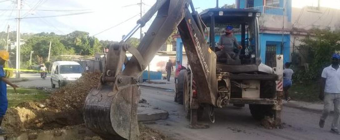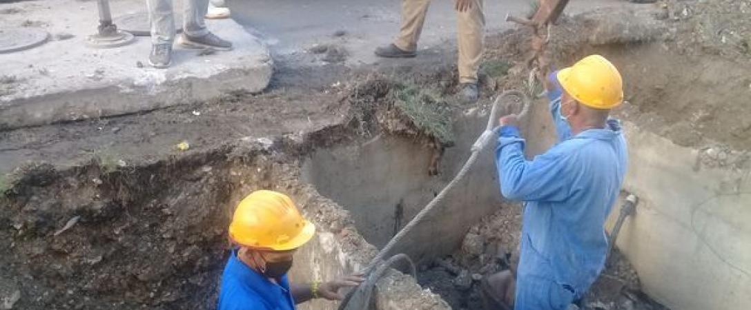 Brigadas de la Base de Grandes Conductoras trabajan en la válvula de calle Cervantes entre Estrella y Camagüey en el municipio Arroyo Naranjo.