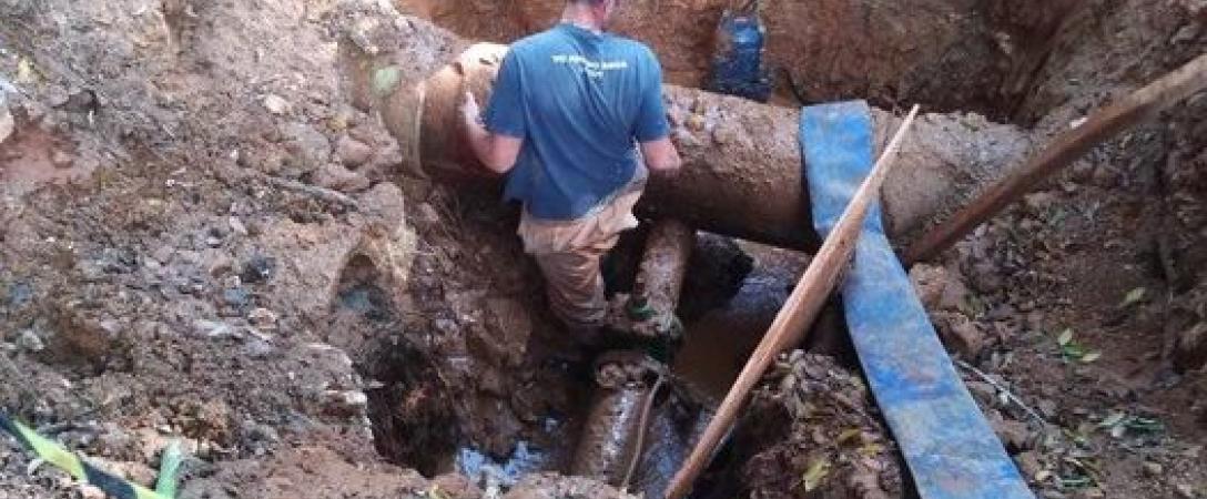 Brigadas de la Base de Grandes Conductoras trabaja en la supresión de salidero de agua potable en conducto de 24", en calle 218 esq. 37, Consejo Popular Versalles-La Coronela, municipio La Lisa.