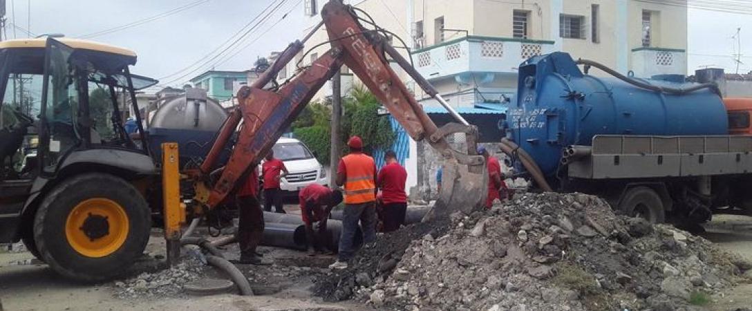 Extensas jornadas de trabajo realizan Brigadas de la Base de Saneamiento para ejecutar la reparación de conducto de alcantarillado en el municipio 10 de octubre.