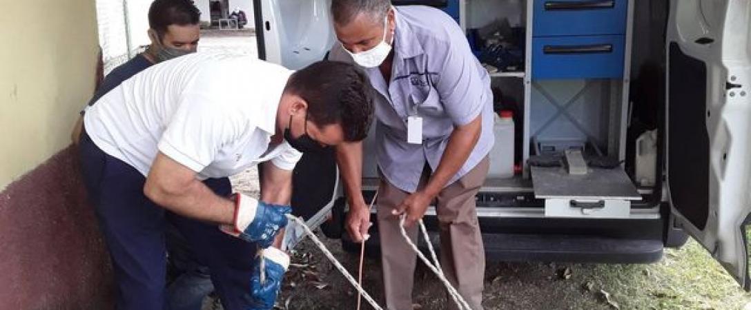 Ingenieros, Especialistas y Técnicos del Departamento de Saneamiento ejecutan acciones especializadas para dar solución a los problemas que afectan a los vecinos del Edif 4510, de la calle 86 e/ 45 y 47 en el Consejo Popular Santa Felicia, municipio Marianao.