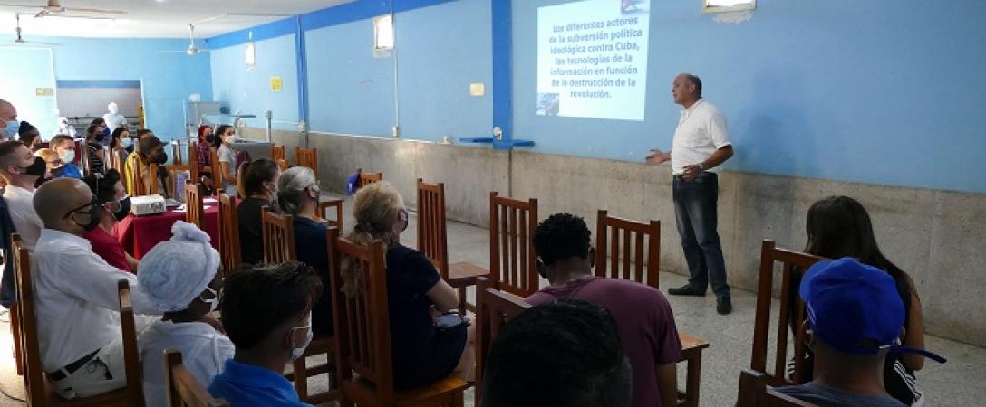 En la tarde de hoy se realizó un encuentro con los jóvenes de la Sede Central de la Empresa, con la intervención del Dr. Sc.Guillermo Lamela, quien explicó detalladamente los orígenes de las acciones subversivas y actos de guerra no convencional contra Cuba y otros países, y sus actores principales. Válido el momento para la preparación política e ideológica de nuestros jóvenes.