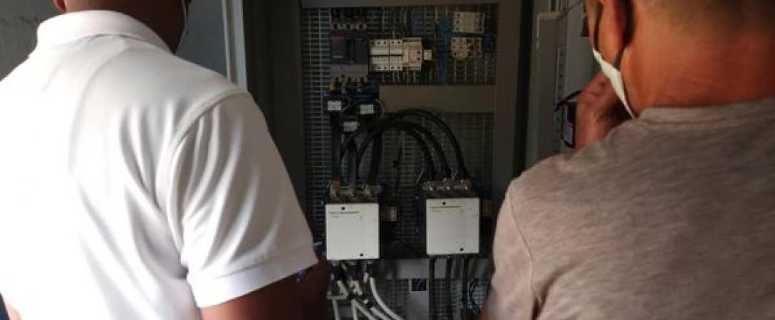 Especialistas del área de grupos electrógenos revisan e inspeccionan el emplazamiento de la Estación de Bombeo de Agua Potable San Antonio.