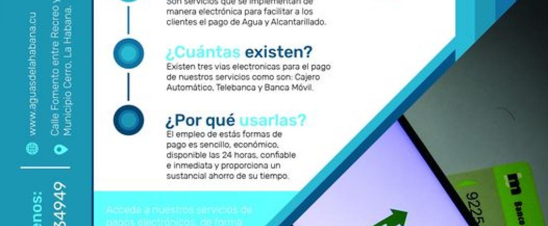 Aguas de La Habana pone a su disposición el pago de sus servicios a través de distintos canales de Comercio electrónico para realizar el pago de los servicios de Agua y alcantarillado: