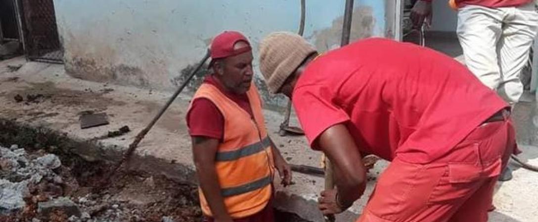 La Base de Saneamiento Oeste trabaja en la reparación de línea de alcantarillado con el objetivo de eliminar vertimientos en la calle 72B del Consejo Popular Buenavista municipio Playa y mejorar la calidad de vida de la población.