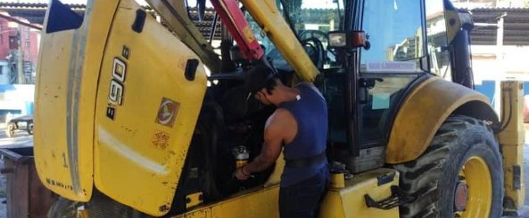 Mecánicos de los talleres buscan solución mediante inventivas a las roturas eventuales de los equipos de la construcción y carros cisternas.