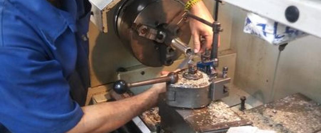 Mecánicos del Taller de Maquinado adaptan una bomba a un motor sumergible para instalar en la Estación de Bombeo "Tiscornia", también se repara la bomba sumergible de la escuela Villena Revolución y la válvula del puente del Diezmero.