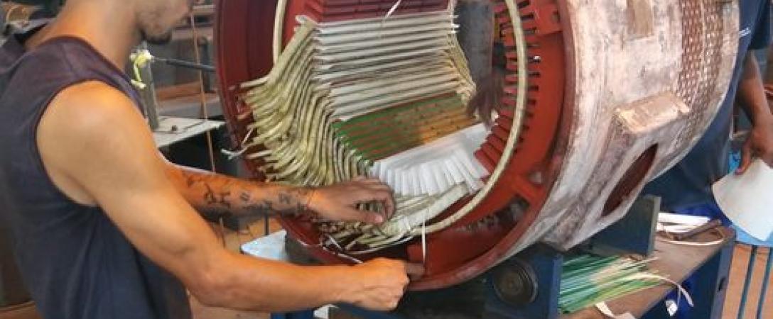 Mecánicos del Taller de Máquinas Eléctricas comenzaron la colocación de las bobinas en el motor vertical de 350 HP, reserva de la captación "Cuenca Sur".