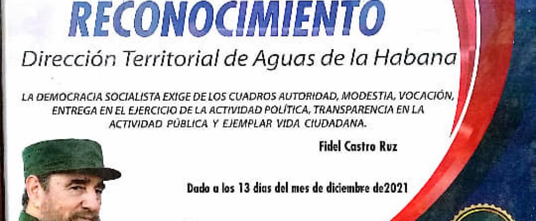 El pasado lunes 13 de diciembre se celebró el aniversario 302 del municipio Marianao y en Asamblea Solemne se reconoció el trabajo destacado de la Dirección Territorial de Aguas de La Habana y en especial a Huberlandis Áreas Carrión, director de la empresa en el municipio.