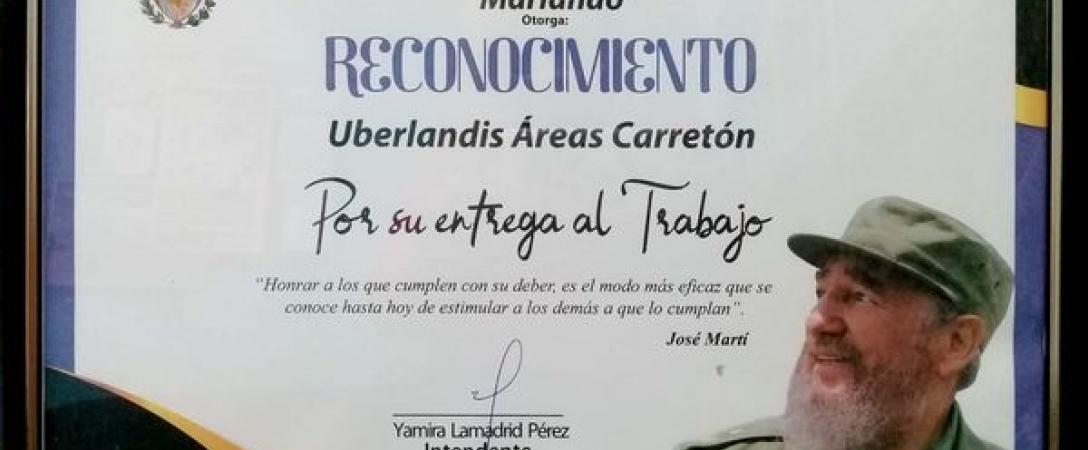 En el día de ayer el Consejo de la Administración del municipio Marianao le otorgó un reconocimiento a Huberlandis Áreas Carrión, Director de Aguas de La Habana en el municipio por su entrega al trabajo.