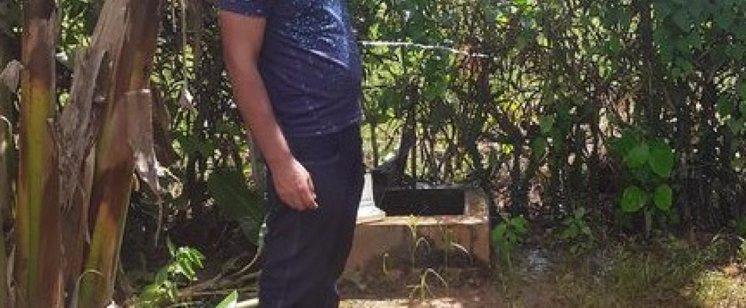 Técnico del laboratorio realiza chequeo del cloro residual en la fuente de abasto La Reforma, para que la población reciba el agua con la calidad requerida.