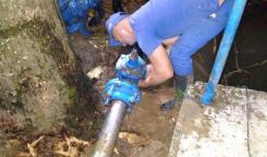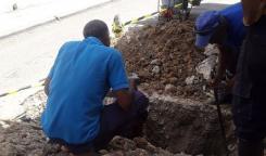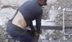 Brigada de la Base de Acueducto Centro trabaja en la reparación de acometida en el Consejo
