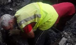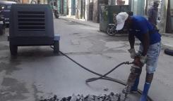 Brigada de la Base de Saneamiento Centro trabaja en la reparación de entronque en calle Rei