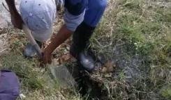 Brigada de la Base de Saneamiento trabaja en la reparación de entronque en el Consejo Popul