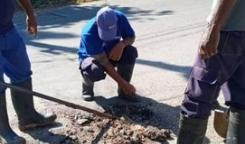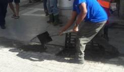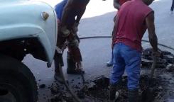 Brigada de la Base de Saneamiento Centro trabaja en la reparación de entronque en el Consej