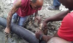 Brigada de la Base de Acueducto del Este, trabaja en supresión de salidero en el.