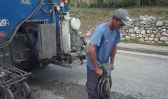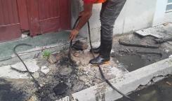 Brigada de la Base de Saneamiento Centro trabaja con carro de alta presión en la desobstruc