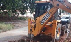 Brigada de la Base de Saneamiento Centro trabaja en la reparación de entronque en el Consej