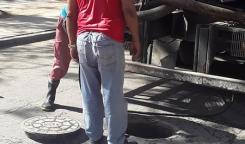 Brigada de la Base de Saneamiento Centro trabaja en la desobstrucción de registro en calle