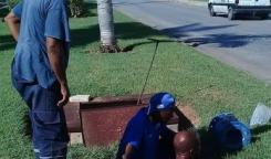 Brigada de la Base de Acueducto del Este, trabaja en supresión de salidero en calle 20 entr