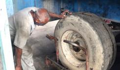 Trabajadores de la ponchera del Taller Armando Mestre, trabajan para resolver los ponches d