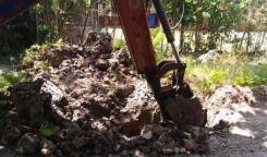 Brigada de la Base de Saneamiento trabajando en la reparación de entronque en calle Beales