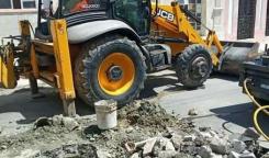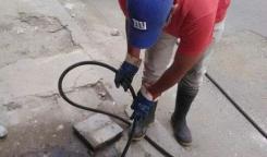 Brigada de la Base de Saneamiento Este realizan trabajos de reparación en calle Candelaria