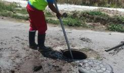 Brigadas de la Base Saneamiento Oeste realiza limpieza de registros en calle Loma esquina J