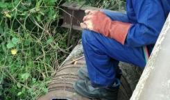 Brigada de la Base Grandes Conductoras suprimen salidero en el conducto ubicado en el Puent